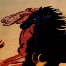 创作思路:画家选取了鄂尔多斯最具代表性的文化标志:汉代车马图、星空、岩画以及黄河几字湾。画面恢弘开阔,色调深沉明快。意象集中多元,感情热烈奔放。画者立足于鄂尔多斯亿万年苍茫的历史文化脉络,将人类文明史、黄河几字湾风云变迁的英雄史,宇宙星...