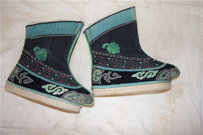 马海制作技艺是伴随着蒙古族的发展历史产生的,主要在春、夏两个季节穿,不分大小号,不分左右脚,不分男女,是用布料制作而成。马海的靴靿比马靴的短一半,多以黑布条绒作靴帮和靴靿。靴靿外侧绣多种花纹和图案,靴底用纯布料加工。马海的制作工序与一般鞋子的制作工序基本相同,都经过选料、裁剪、粘贴、刺绣、缝补等工序。