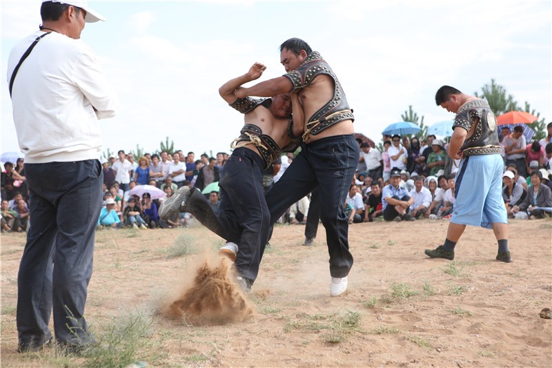 在蒙古族最早的史书《蒙古秘书》中,便记载了人们唱歌跳舞举行“那达慕”的盛况。当年王昭君出塞时,草原蒙古人民就曾以这种盛大的活动仪式来迎接她。13世纪初,成吉思汗统一了蒙古82个部落,他为检阅自己的部队,维护和分配草场,每年都要将各个部落的首领召集在一起,举行较大规模的“那达慕”活动。到了清代,“那达慕”大会便逐渐演变成由官方定期召集的民间文娱竞技等庆丰收的大会。刚开始时,“那达慕”以单纯的歌舞娱乐形式为主,不久便增添了以摔跤、射箭、赛马为基本内容的比赛项目,而且竞技占有较大的比重。重视竞技比赛,和蒙古族悠久的历史传统有着深刻的渊源关系。可以说,如今,竞技已几乎贯穿到蒙古族生活方式的方方面面中去了。如春季打马鬃,骠悍的骑手调教爆裂的生个子儿马,祭敖包仪式之中,婚礼进行途中,都会绽开规模下等、趣味迥异的各种竞技比赛。