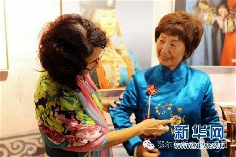 哈勒珍(右)身着姚凤琴(左)绣的服装,两人均为非遗项目代表性传承人(曹桢 摄)