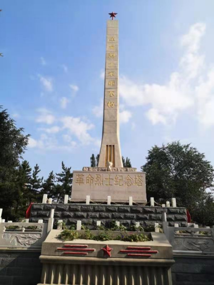 陵园内建有革命烈士纪念塔一座,通高23.5米。塔身正、背两面各用蒙汉两种文字题有“革命烈士永垂不朽”八个鎏金大字。顶端立有红五星。台基分三层,上层台基的四角塑有八个火炬模型,中层台基四角各置玉兰灯一具。下层台基上松柏交拥,花草掩映。纪念塔北侧建有烈士谱碑亭,谱碑两面黑底金字铭刻着166位蒙汉英烈的姓名、籍贯、年龄、生前所在部队及职务。